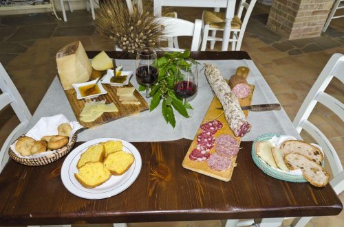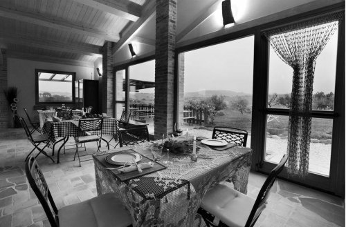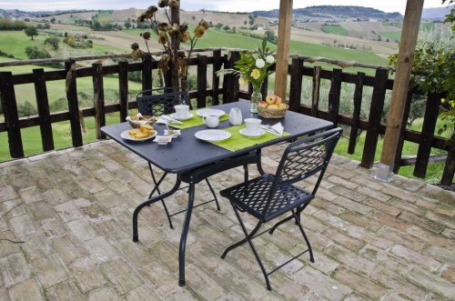 The agritourism has a large terrace which overlooks the Marche hills.