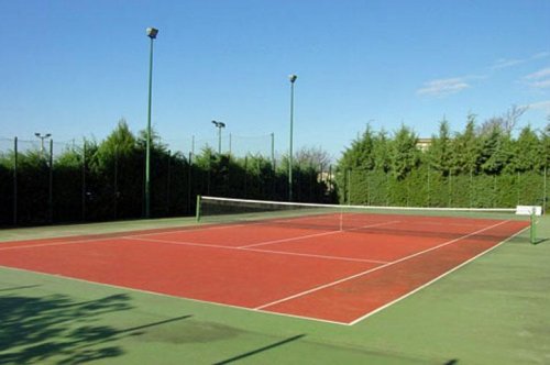 Neben Pfauen, Fasanen, Enten und Schwänen beherbergt der üppige Park zwei Pools mit großer Sonnenterrasse, ein Entspannungsbecken, beleuchtete Tennis- und Fußballplätze sowie eine Reithalle.