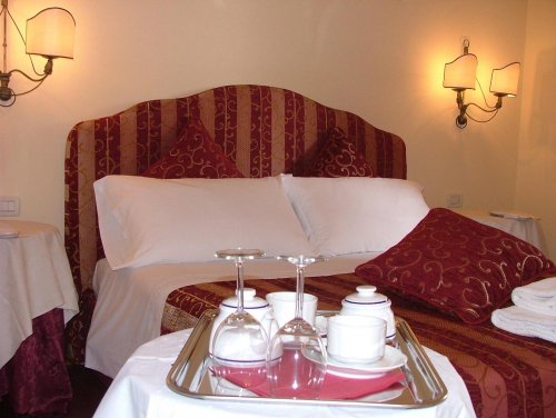 Das „Ai Dogi Veneziani“ bietet geschmackvoll und komfortabel mit edlen venezianischen Stoffen eingerichtete Suiten mit Klimaanlage und Safe.