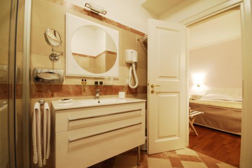 Le camere, accoglienti e raffinate, sono dotate di TV color satellitare con schermo piatto LCD, Pay-TV, connessione Wi-Fi a Internet, climatizzatore autonomo, cassetta di sicurezza, frigobar, bagno privato con doccia/vasca e asciugacapelli.