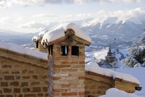 Grazie alla sua posizione panoramica, offre una vista davvero suggestiva: da un lato le vette dei Monti Sibillini e dall’altro il promontorio del Cornero e le colline marchigiane.