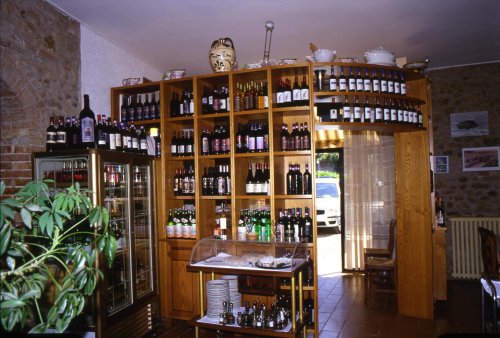 Das Restaurant verfügt über einen Weinkeller mit einer erlesenen Auswahl von etwa 150 toskanischen Weinen, von „Supertuscans“ über Chianti bis hin zu neuen Weinen aus der Gegend (Montecucco, Morellino, Monteregio). Die „Supertuscans“ umfassen beispielsweise Tignanello vom Gut Antinori, Sassicaia vom Gut San Guido, Avvoltore vom Gut Moris und Brunello di Montalcino San Carlo vom Gut Antinori.