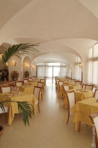 Im Speisesaal „Sala Pompei“ genießen Gäste traditionelle Gerichte der Region und frischen Fisch.