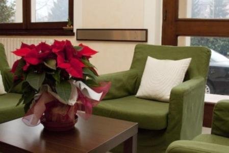 Die Komfort-Palette des Hotels umfasst ein gemütliches Restaurant, eine Lounge-Bar mit Fernseher und Internetzugang, einen weitläufigen Garten mit Pool (nur im Sommer geöffnet) und einen großen Parkplatz.