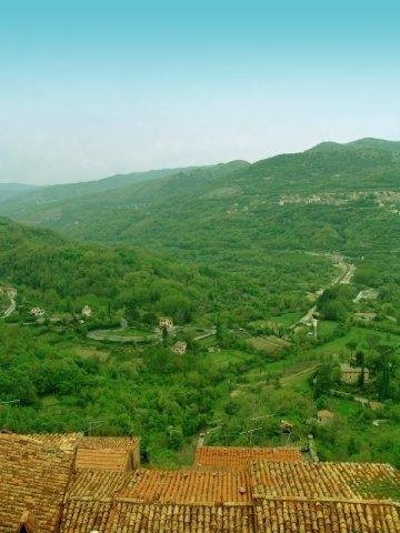 Hinter dem Schloss links und nach circa 7 Kilometern an der Abzweigung rechts in Richtung Anticoli Corrado (3 Km) abbiegen.