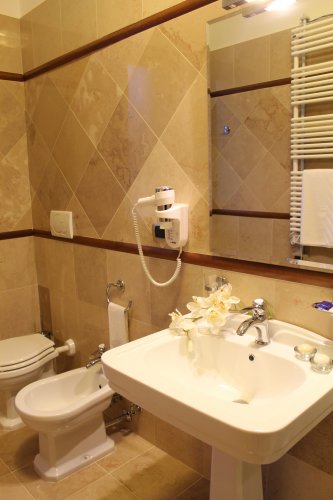 Le camere Standard sono composte da letto matrimoniale, bagno privato con doccia o vasca, piccolo affaccio lato giardino o colonnato interno.