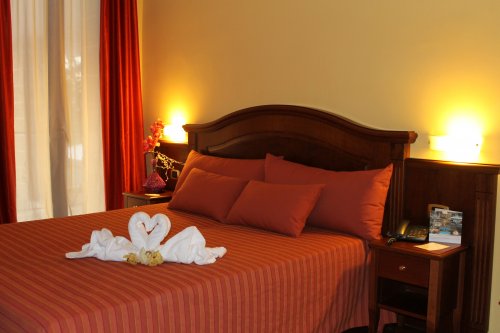 Le camere Superior sono composte da letto matrimoniale, bagno privato con doccia; si differenziano dalle Standard per l’ampio terrazzo attrezzato con tavolino e sedie che offre una splendida vista sulla piscina e sul giardino interno.