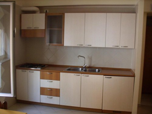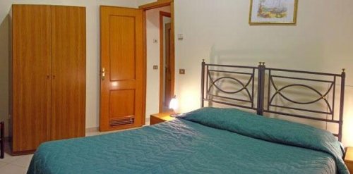 -Vier-Zimmer-Apartment (75 m²) für sieben bis acht Personen, bestehend aus Wohn-/Esszimmer mit Küchenzeile, Schlafcouch für zwei Personen, kleinem Zimmer mit zwei Einzelbetten, zwei Zimmern für je zwei Personen, zwei Bädern mit Dusche, Terrasse.
