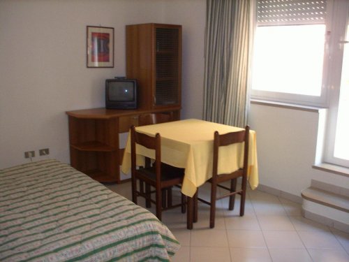 -Ein-Zimmer-Apartment (25 m²) für eine oder zwei Personen, bestehend aus Wohn-/Esszimmer mit Küchenzeile, Doppelbett (oder zwei Einzelbetten), eigenem Bad mit Dusche und Terrasse.