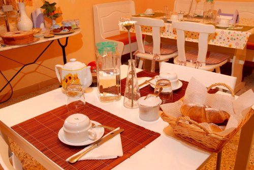 Im Erdgeschoss wird morgens ein kontinentales Frühstückbuffet mit hausgemachter Bio-Marmelade und typischen Süßigkeiten serviert.