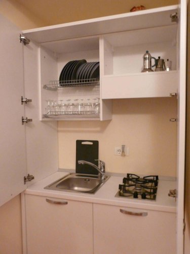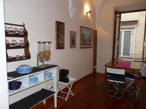 Morgens stehen im Speiseraum des Apartments „San Pietro“ alle Zutaten für ein Frühstück bereit (ohne festen Zeitrahmen): Kaffeemaschine, Wasserkocher, Toaster, Honig, Marmelade, Nutella, Butter, Brot, Milch, Joghurt und Säfte.