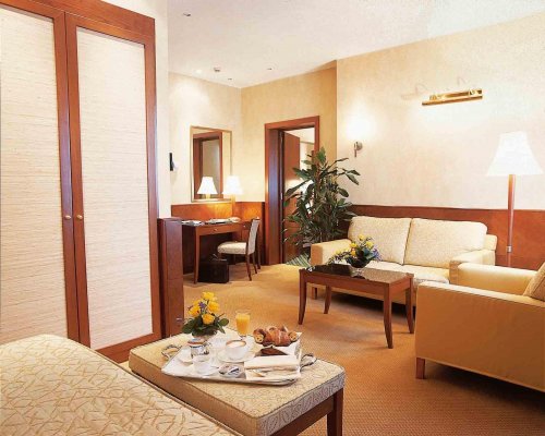 Die Junior Suiten sind das Prunkstück des Ascot, hier herrscht unzweifelhaft eine stilistisch gehobene Atmosphäre vor. Die prächtigen Badezimmer erhalten durch die kostbare Marmorverkleidung und eine Jacuzzi-Whirlpoolmassagewanne das besondere Etwas.