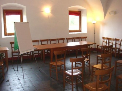 Il locale adibito a sala riunioni è dotato di videoproiettore, impianto audio e frigobar.