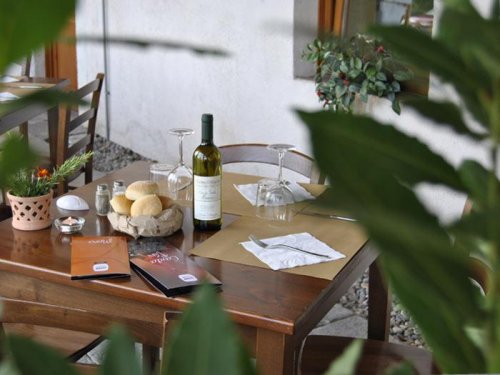 Durante la stagione estiva è possibile cenare all'aperto sotto un portico appositamente allestito.