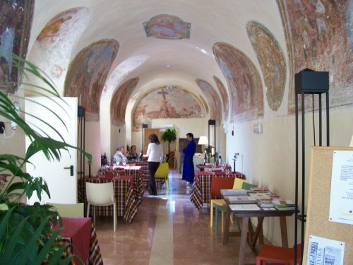 Dall'antico chiostro, che conserva ancora il pozzo, si accede alla hall con pareti affrescate con scene ispirate alla vita di Giovanni da Capestrano.