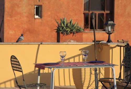 L'appartamento dispone di due camere doppie e una camera singola, oltre che di una magnifica terrazza di 100 mq con vista panoramica su Trinità dei Monti e sull'Accademia di Francia.