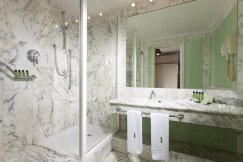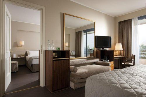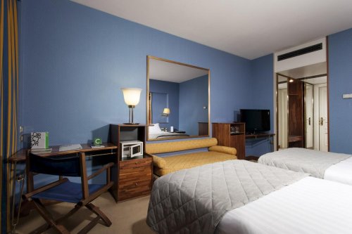 Alle Zimmer sind mit edlen Stoffen verziert und mit verstellbarer Klimaanlage, Sofa (im Doppelzimmer), Safe, W-LAN, Fernseher, Sky-TV, Minibar und einem eigenen Marmor-Bad mit Dusche oder Badewanne, Haartrockner und zweitem Telefon ausgestattet.