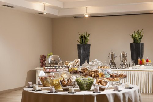 Im Speiseraum wird von 07:30 bis 10:30 Uhr ein Frühstücksbuffet mit verschiedenen Brotsorten, Croissants, Gebäck, Marmelade, Joghurt, Cornflakes, frischem Obst, Eiern, Schinken, Käse und Wurst serviert. Zudem ist ein Bereich für Diätkost und glutenfreie Speisen verfügbar.
