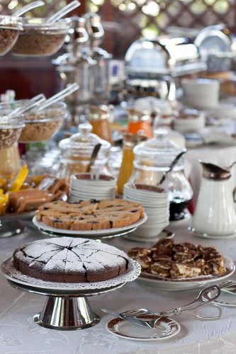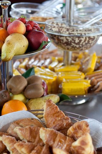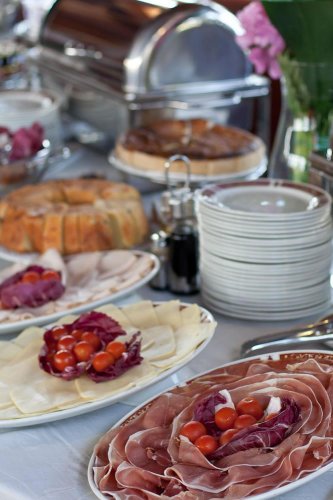 Das Frühstück wird auf der Panoramaterrasse im 4. Stock als Buffet angerichtet, von wo aus Sie einen zauberhaften Blick auf die Kuppel des Petersdomes und die Ewige Stadt genießen.
