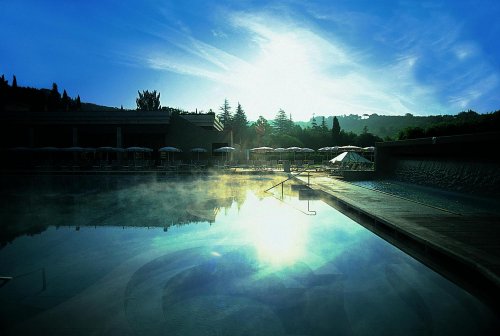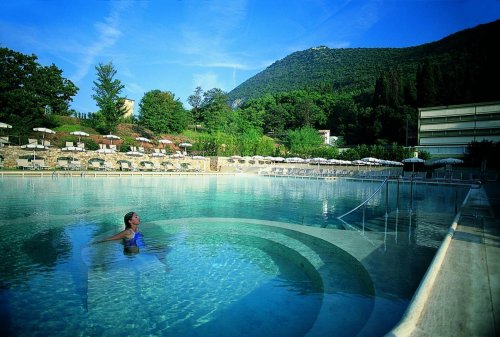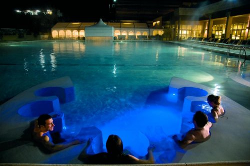The resort is also connected with a spa which has a gym, beauty treatments, massage therapy, a selection of relaxation areas, aesthetic medicine, a splendid open-air heated swimming pool, a large scenic waterfall (with underwater hydromassage jets) and a suggestive cave which is over one thousand years old. The large park is home to a fresh water swimming pool, a tennis court, an assault course and trekking paths for trips around the surrounding countryside.