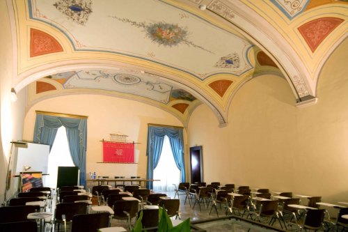 Der Kongresssaal im zweiten Stockwerk des Hauses zählt 60 Plätze und wird von Deckenfresken geziert. Hier finden Tagungen, Besprechungen und Firmenmeetings ihre würdige Untermalung.