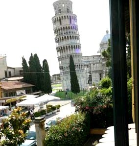 Viele der 32 Zimmer bieten einen direkten Ausblick auf den Schiefen Turm.
