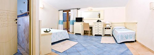 Le camere in stile sardo sono completamente climatizzate e dotate di TV color satellitare, minibar (rifornito su richiesta), cassaforte, veranda o balcone, bagno privato con asciugacapelli.