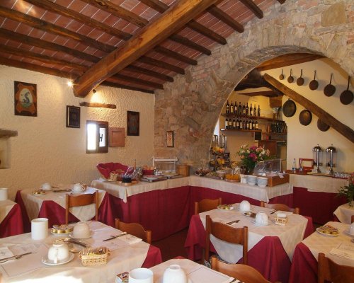 Das exklusive Restaurant „Il Cortile“ öffnet morgens mit einem üppigen Frühstücksbuffet. Zum Abendessen werden köstliche Spezialitäten der lokalen Küche serviert.