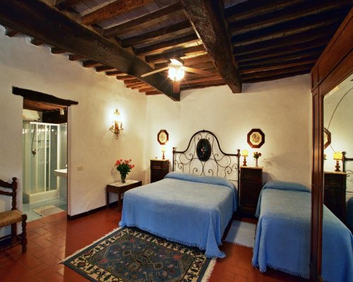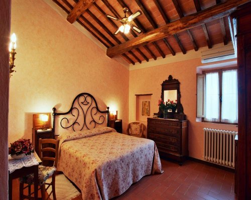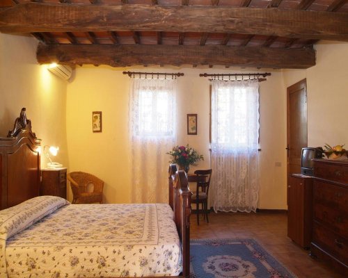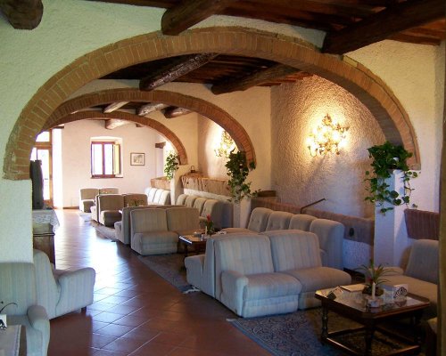 Traditionelle Einrichtung, hohe Decken mit sichtbaren Holzbalken und typisch toskanische Tonfliesenböden zieren die Zimmer und Gemeinschaftsbereiche des Hauses.