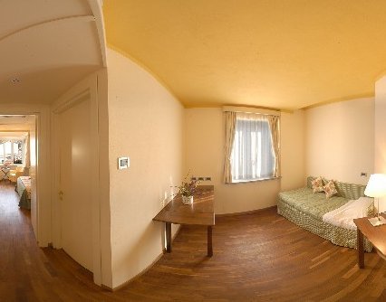 Sowohl die Zimmer als auch die Gemeinschaftsräume sind mit Holzböden ausgestattet, die Einrichtungen und Leuchten sind von absoluter Qualität und bieten höchsten Komfort.