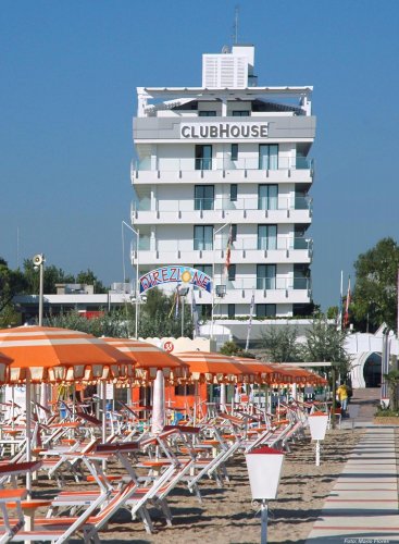 Das Hotel Club House liegt direkt am Meer in Rimini, nur ein paar Schritte von den Sehenswürdigkeiten der Altstadt und wenige Minuten vom Flughafen entfernt.