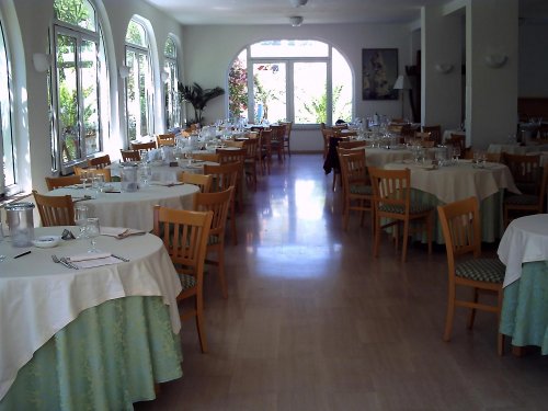 Der Speisesaal fasst bis zu 150 Personen, der Frühstücksraum bis zu 70 Personen.