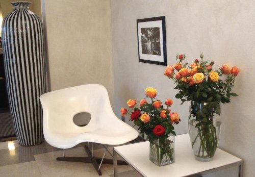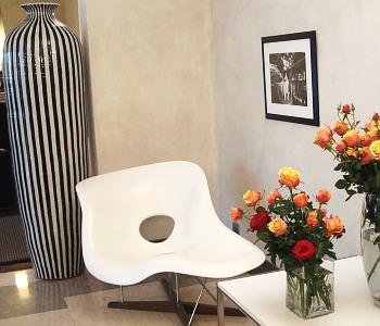 Mit seiner Fassade aus den 50er Jahren und dem zeitgenössischen Stil der Innenräume (als Beispiel seien die Gemälde und Fotos an den Wänden und der Vitra-Sessel vom Ende der 40er Jahre genannt), stellt es eine elegante und funktionelle Aufenthaltsmöglichkeit dar, die in der Lage ist, Erfordernisse jeglicher Art zu erfüllen.