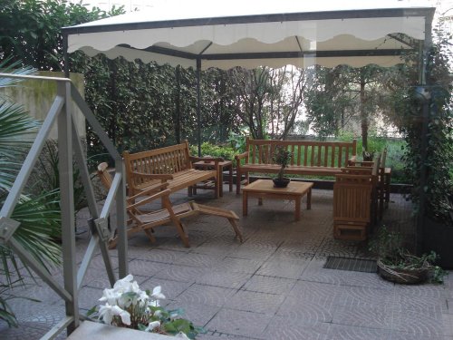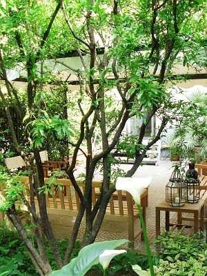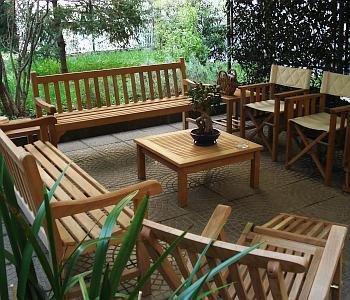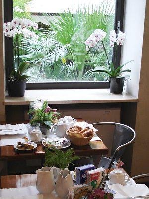 Das Frühstück wird am Buffet oder im Zimmer serviert, und in der schönen Jahreszeit in dem internen, ruhigen und hellen Garten.