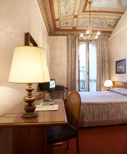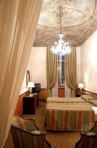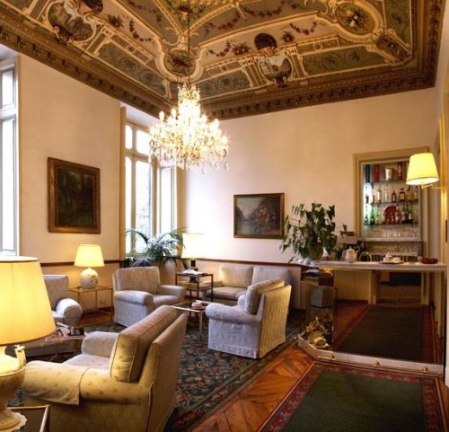 Sie finden unser Hotel in einem klassischen Palazzo aus dem ausgehenden 19. Jahrhundert, der noch heute seine kostbaren Stuckarbeiten, die Gemälde und Mosaiken von einst beherbergt.