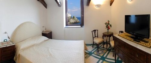 Das Hotel bietet geräumige, helle Zimmer mit edler antiker Einrichtung, Majolikafliesen aus Vietri und bezaubernden Decken.