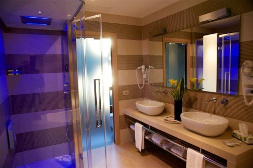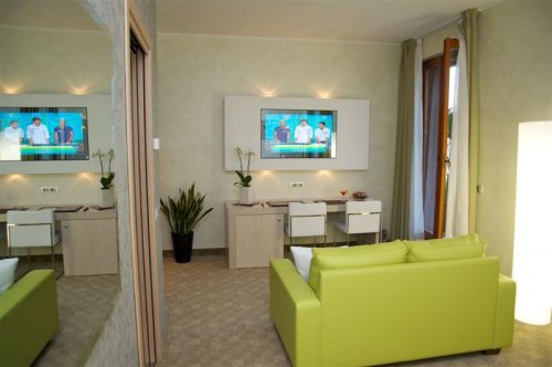 Die beiden Superior-Doppelzimmer und die Senior Suite sind zudem mit einer Terrasse, einer Massagebadewanne für zwei Personen und einer Multifunktions-Wellness-Duschkabine ausgestattet.