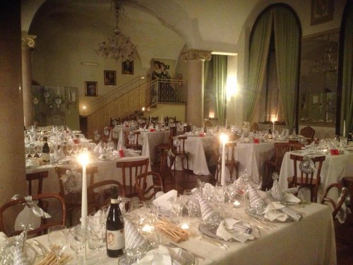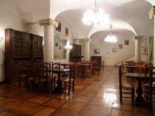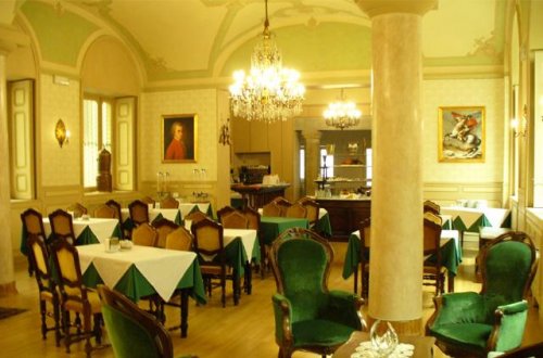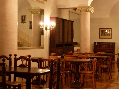 Der von restaurierten Gewölben und großen antiken Fenstern geprägte Saal „Salone Amadeus“ im Erdgeschoss beherbergt Bar und Speiseraum des Hotels. Ein altes Klavier krönt die bezaubernde Atmosphäre.