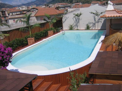 In der schönen Jahreszeit ist es angenehm, sich an unserem Schwimmbecken zu entspannen und sich am Sonnenbereich mit seinen Sonnenschirmen und Liegen ausgiebig zu bräunen.