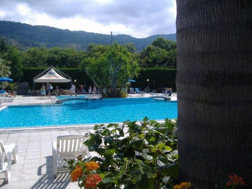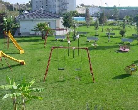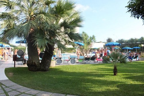 Der üppig bepflanzte Park, der das Hotel umgibt, umfasst zwei Tennisplätze, einen kleinen Fußballplatz, ein überdachtes Amphitheater, einen Pool mit Pilzwasserfall und Massagedüsen, ein Boccia-Feld, eine Bar sowie ein Wellness-Center mit Sauna, Dampfbad und Whirlpool.