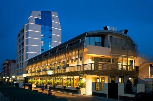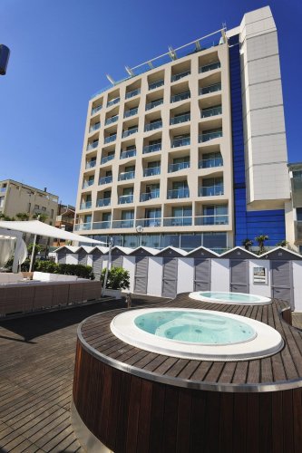 Das Hotel Excelsior in Pesaro liegt direkt am Meer, nicht weit vom Stadtzentrum entfernt.