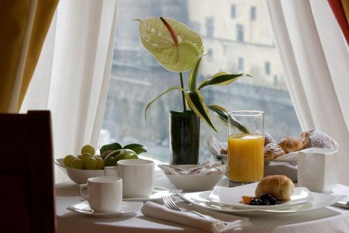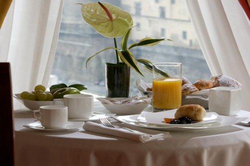 Das Frühstück wird auf dem liebevoll und schlicht gestalteten Dachgarten „Terrazza Angiò“ serviert (Öffnungszeiten: 06:30 bis 11:00 Uhr).