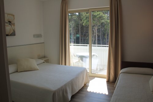 Das Hotel bietet modern eingerichtete Zimmer (im Jahr 2005 renoviert) mit großer Terrasse, Klimaanlage, Telefon, Satellitenfernsehen, Minibar, Bett, Kleiderschrank, Nachtschränkchen, Schreibtisch, Hocker und eigenem Bad.
