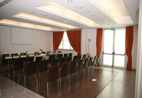 Der 50 Quadratmeter große Tagungsraum eignet sich hervorragend für geschäftliche Versammlungen.