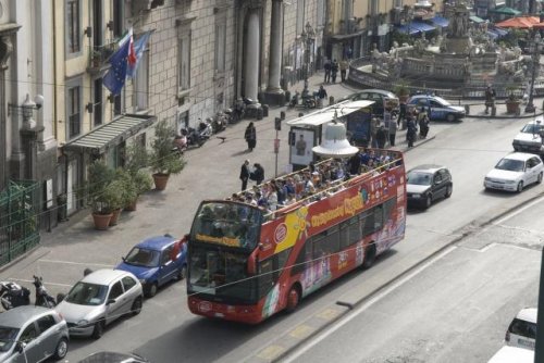 An der Piazza Municipio angekommen, ganz in der Nähe der Burg Castello Maschio Angioino, nehmen Sie die Via Medina bis zur Kreuzung, begeben sich in den Kreisverkehr und fahren auf der Via Medina auf der Gegenseite zurück, biegen dann in die zweite Straße rechts ein, in der sich das Hotel befindet.