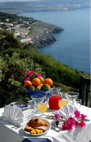 Im Restaurant des Hotels genießt man bei Kerzenschein und einem fabelhaften Ausblick typische Spezialitäten der Region sowie ein üppiges Vorspeisenbuffet.