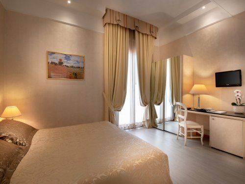 Alle unsere Zimmer sind komplett schalldicht verkleidet und bieten Minibar, Safe mit elektronischer Kombination, Satellitenfarbfernsehen, Direktwahltelefon, regelbare Klimaanlage sowie ein eigenes Badezimmer mit Duschkabine und Haartrockner.
