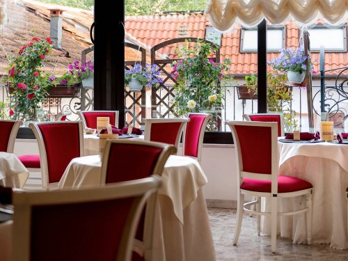 Im komfortablen, luxuriösen Ambiente des eleganten Jugendstil-Restaurants genießen Gäste köstliche Gerichte der typisch regionalen und internationalen Küche.
