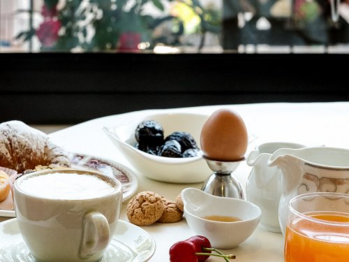 Im Frühstücksraum wird morgens ein üppiges Buffet für jeden Geschmack serviert. Die Auswahl umfasst unter anderem erstklassiges, frisches Feingebäck.