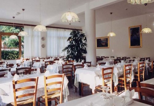 In dem eleganten Restaurant mit vollständig erneuerter Einrichtung und Panorama-Blick auf den Garten können täglich die Spezialitäten der lokalen Küche mit schmackhaften Fischgerichten genossen werden.